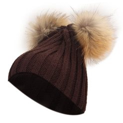 Women Winter Fur Hat Double Pom Beanie Hat Knit Beanie Bobble Ski Cap