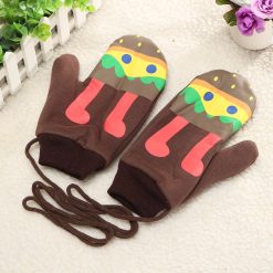 Women Girls Cute Cartoon Pattern Cotton Blend Gloves Full Finger Fleece Lining Mittens