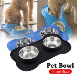Dog Cat Bowls Stainless Steel No Spill Silicone Mat Pet Water Food Dish