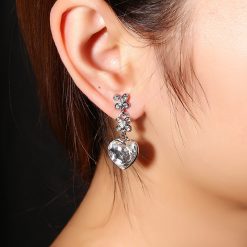Sweet Heart Earrings Tassel Rhinestone Crustal Earrings