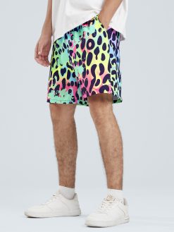 Mens Leopard Ombre Print Loose Drawstring Waist Shorts