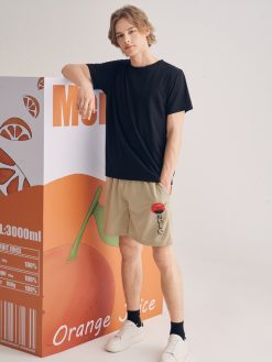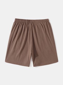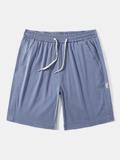 Mens Letter Pure Color Elastic Waist Knee Length Shorts