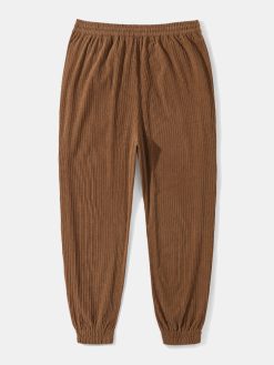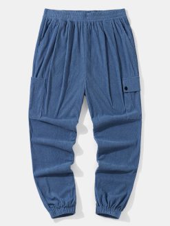 Mens Solid Color Corduroy Drawstring Waist Daily Cuffed Pants