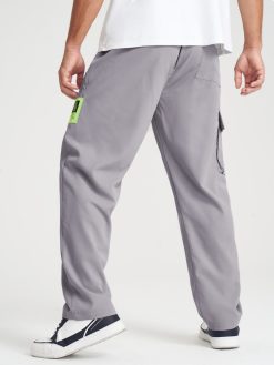 Mens Pure Color Multi Pocket Daily Loose Drawstring Cargo Pants