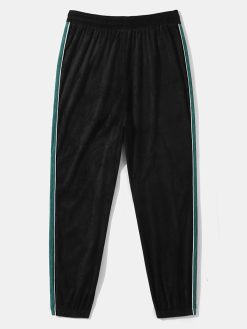 Mens Side Stripe Patchwork Corduroy Loose Drawstring Pants
