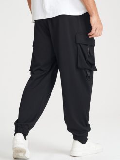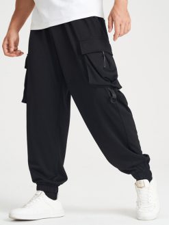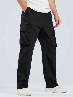 Mens Solid Color Multi Pocket Straight Cargo Pants