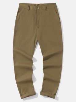 Mens Solid Color Double Pocket Ankle Length All Matched Pants