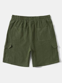 Mens Solid Color Mid Length Daily Drawstring Cargo Shorts