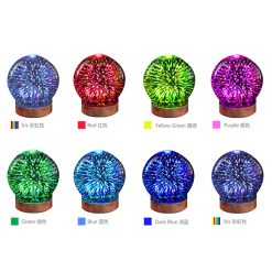 3D Fireworks Glass Aromatherapy Diffuser 100ml Cool Mist Humidifier Color Changing Light Night