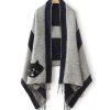 Cat Pattern Fringed Scarf Shawl Both Sides Wearing Plaid Scarf