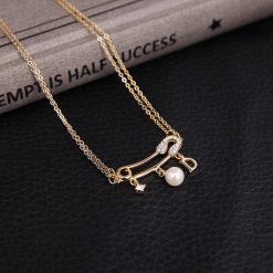 Cute Jewelry Set Brooch Pearl Rhinestone Earrings Necklace Set