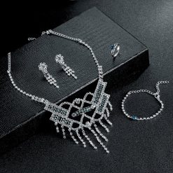 Elegant Jewelry Set Tassel Full Zircon Necklace Earrings Set