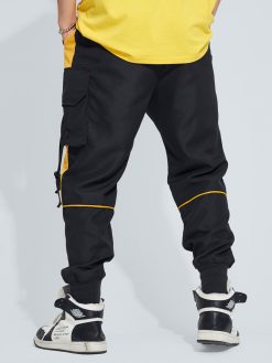 Mens Color Block Patchwork Letter Print Street Cargo Pants