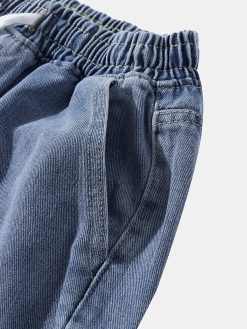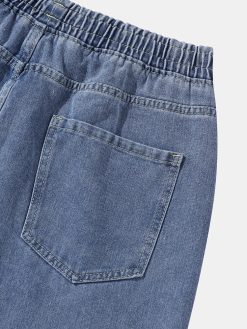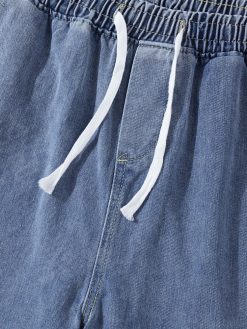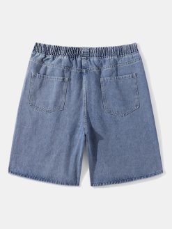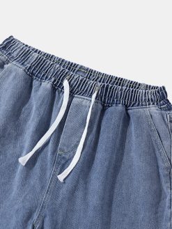 Mens Denim Wide Legged Drawstring Knee Length Shorts