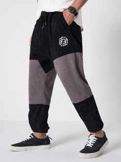 Mens Hoop Ethnic Embroidered Color Block Ankle Length Pants