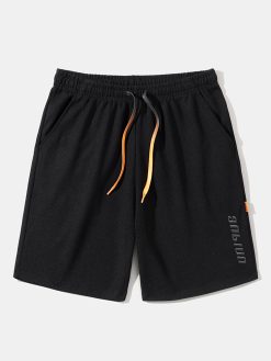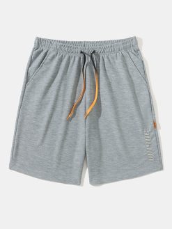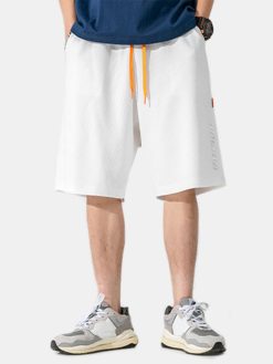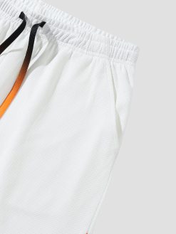 Mens Letter Embroidered Gradient Straps Knee Length Shorts