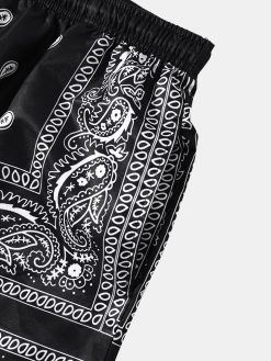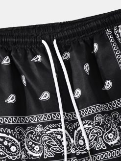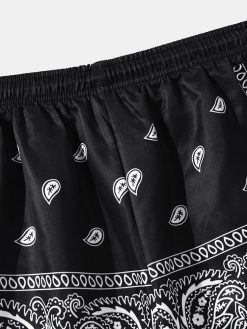 Mens Paisley Print Pockets Drawstring Knee Length Shorts