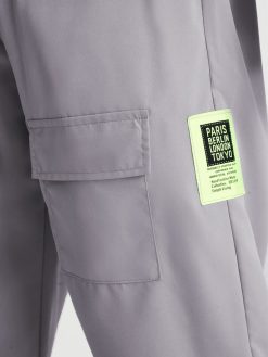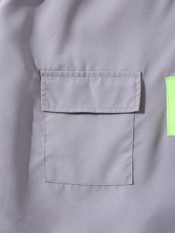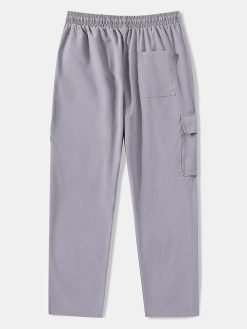 Mens Pure Color Flap Pocket Applique Loose Straight Cargo Pants