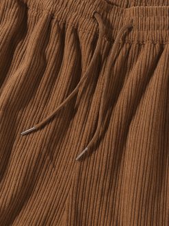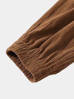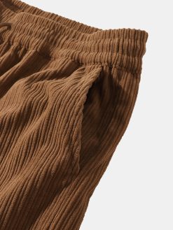Mens Solid Color Corduroy Drawstring Waist Daily Cuffed Pants