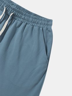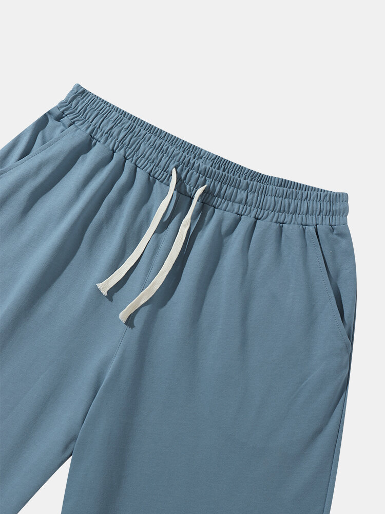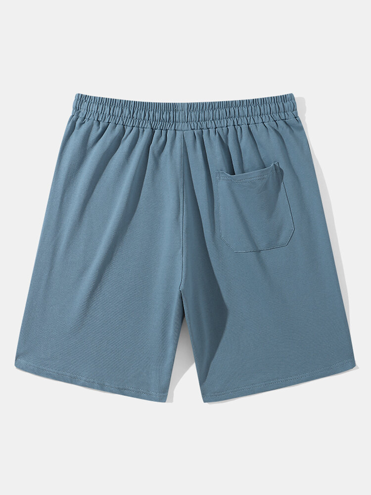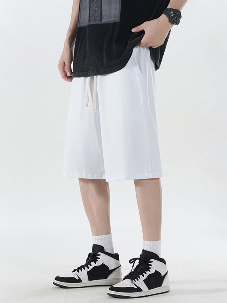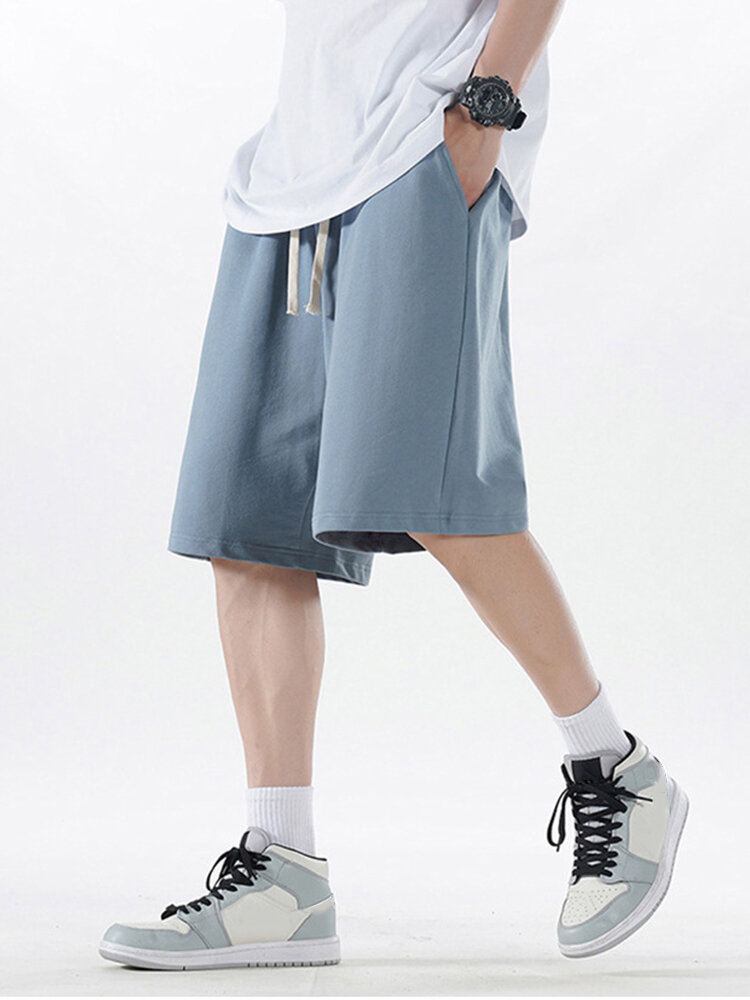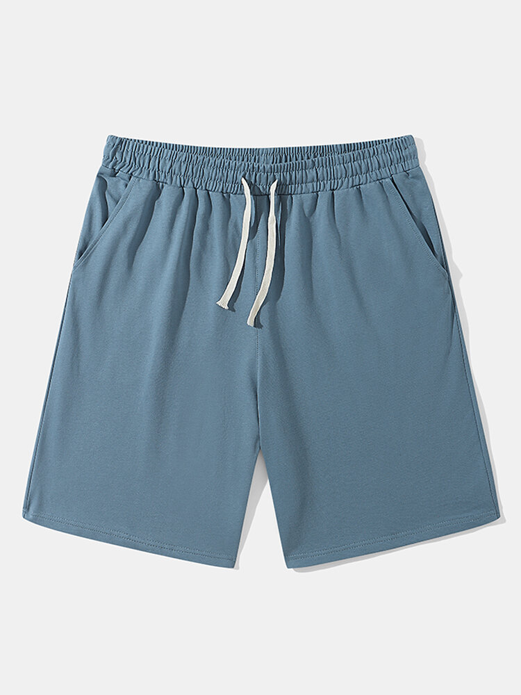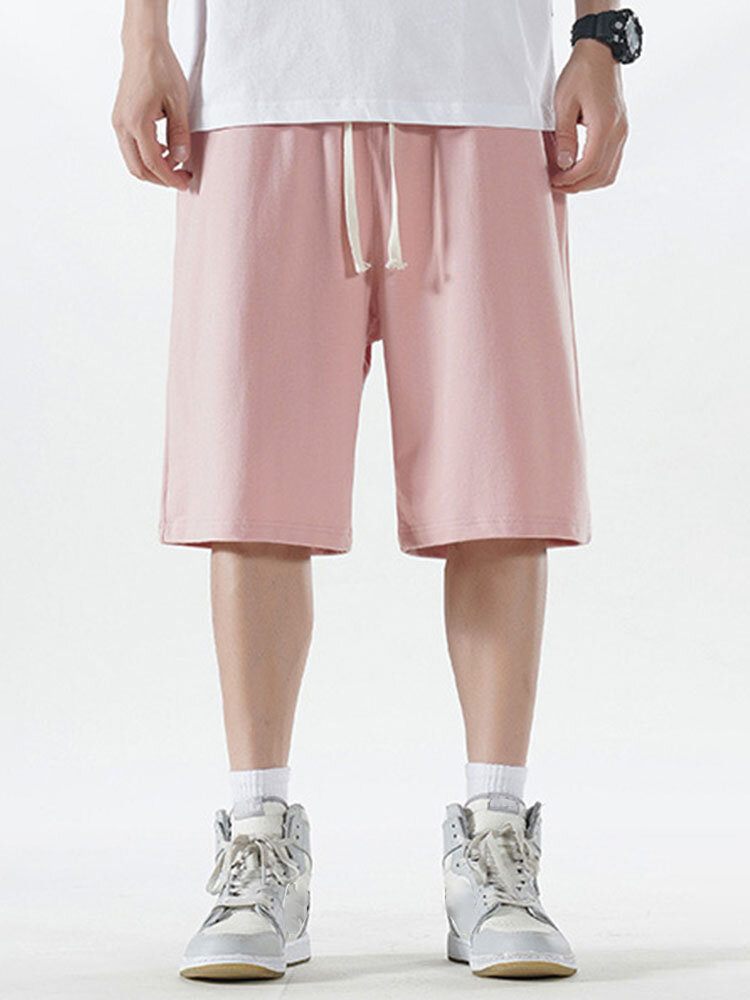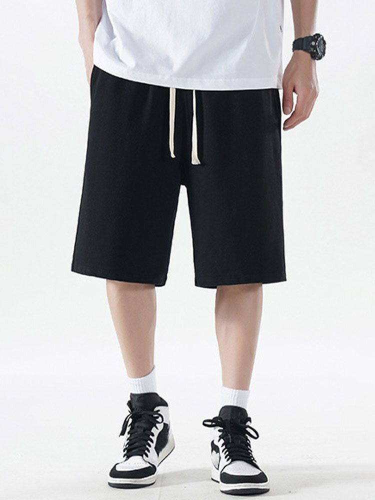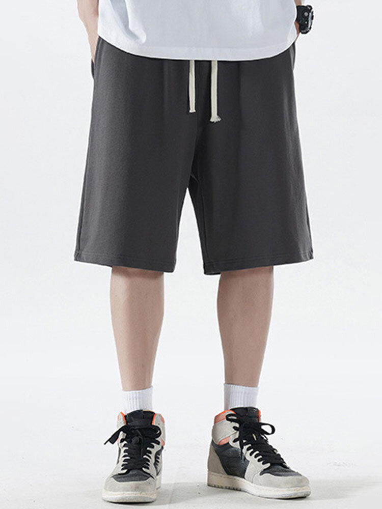Mens Solid Color Mid Length Loose Daily Drawstring Shorts