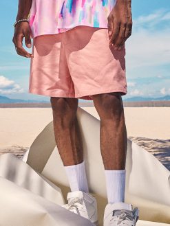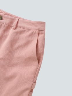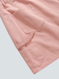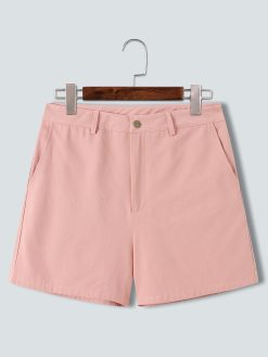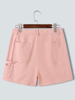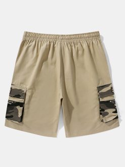 Mens Solid Color Multi Pocket Cotton Loose Shorts