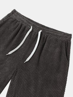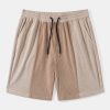Mens Textured Side Split Solid Color Drawstring Shorts