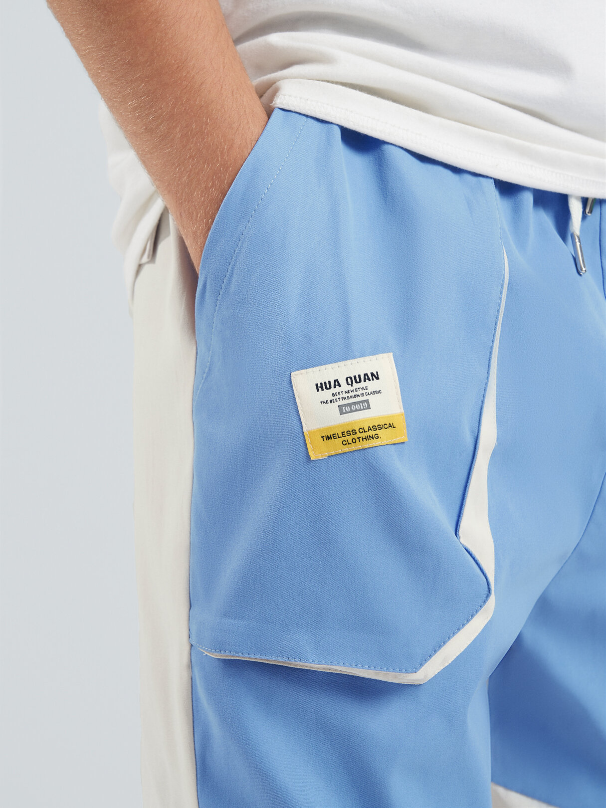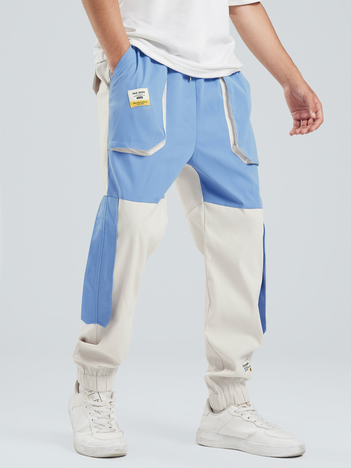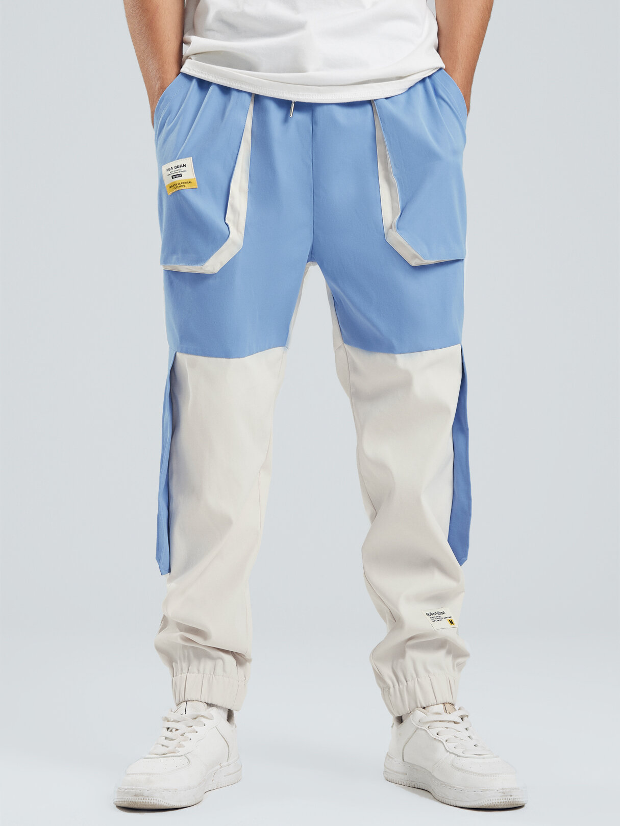 Mens Two Tone Patchwork Street Drawstring Cargo Pants