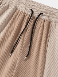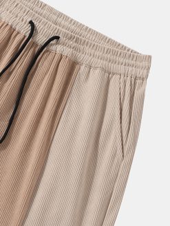 Mens Two Tone Stitching Corduroy Preppy Mid Length Shorts