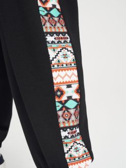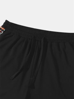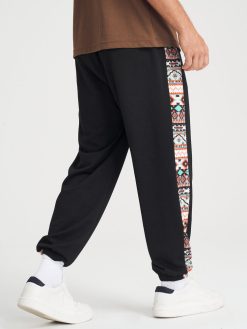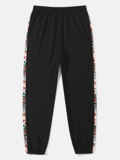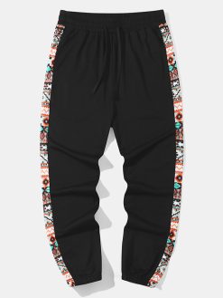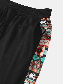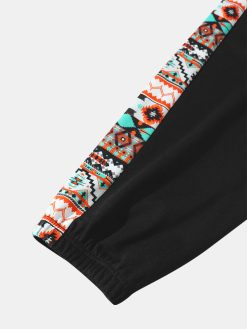 Mens Vintage Geometric Side Print Patchwork Loose Cuffed Sweatpants