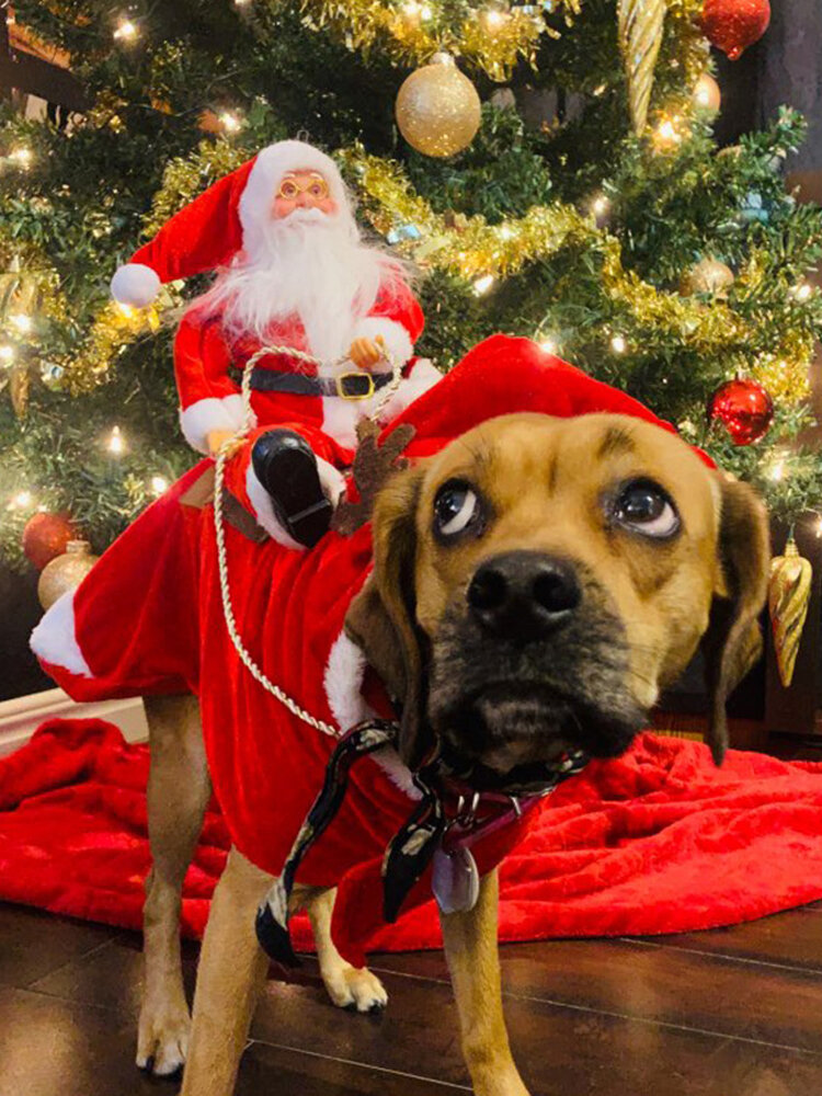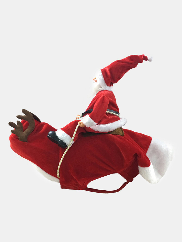 Pet Dog Christmas Costume Santa Claus Riding Pet Clothes Riding Deer Costume