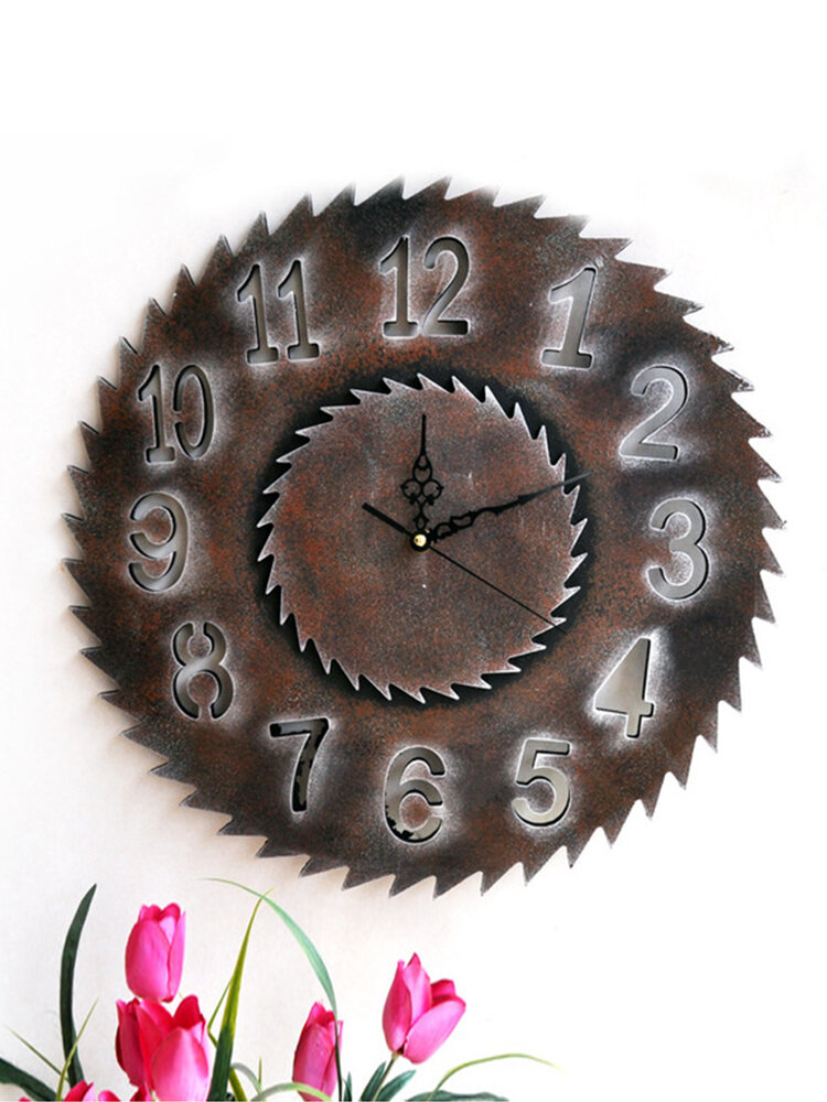 Retro Industrial Wind Wooden Gear Saw Blade Clock Home Bar Wall Sticker Wall Clock Gear Ornament Cl200